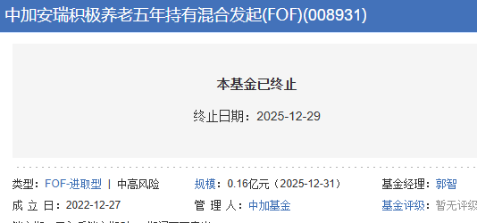 为更好维护基金份额持有人的利益,按照《中华人民共和国证券投资基金法》、《公开募集证券投资基金运作管理办法》和《中加安瑞积极养老目标五年持有期混合型发起式基金中基金(FOF)基金合同》的有关规定终止该基金《基金合同》并进行基金财产清算,无需召开基金份额持有人大会。该基金自2025年12月29日起进入清算期。
